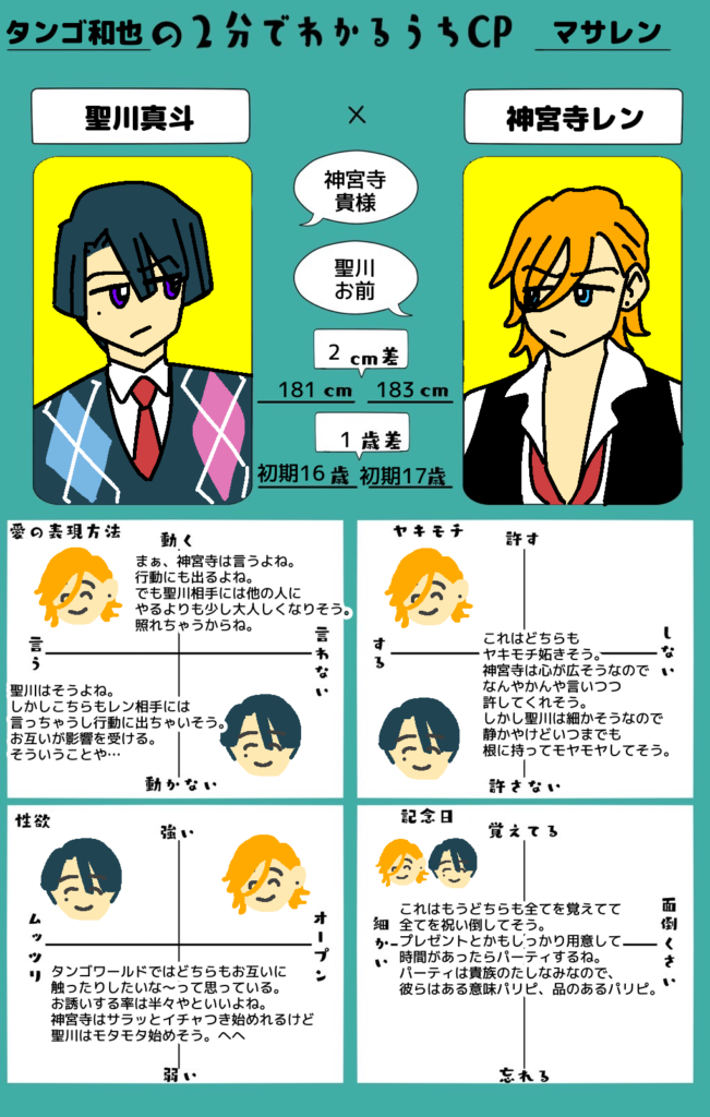 カカガイだけでなくマサレンまでタンゴさんのカップルテンプレートが見れてめちゃくちゃ嬉しいです!今PCが手元にないので次回までに自身の分を描いて感想と共に載せますね。